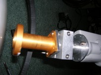 The lens was shaped to achieve the required two different beamwidths. It was machined from a low cost polymer billet. (You'll see that white plastic is not very photogenic !) You could try this with a reflector antenna too, but would probably struggle to illuminate it with a well behaved primary feed which would need to sit in front of the reflector aperture. With the lens the reverse applies and so the feed does not get in the way. On these topics I contributed a chapter to this text book published in 2013: